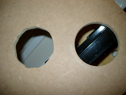 As can be seen the hole on the right done with the 3inch cutter is a lot better than my own attempt on the left..