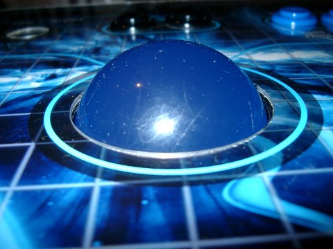 A hole in the graphic was cut to match the plexi-glass cover and the trackball was mounted.